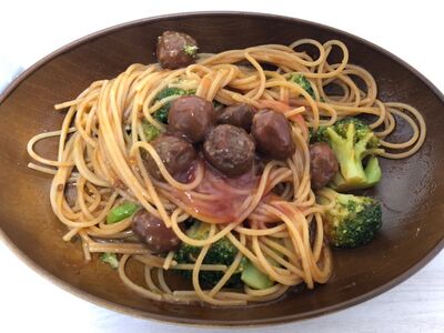 トマトソースとミートボールのパスタ